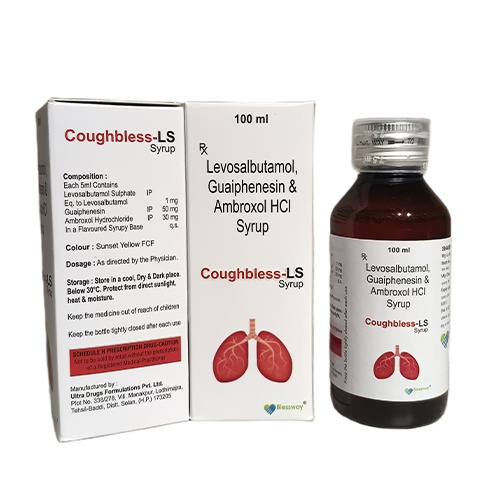| Product Composition | Each 5ml contains: Levosalbutamol Sulphate IP Eq. to Levosalbutamol 1mg, Guaiphenesin IP 50mg, Ambroxol Hydrochloride,IP 30mg, in a flavoured syrupy base q.s. |