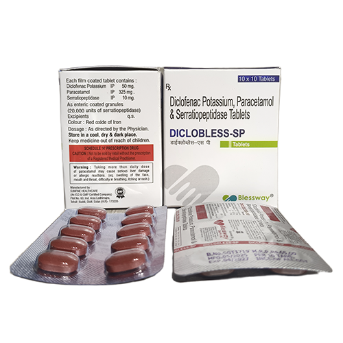 | Product Composition | Each tablet contains: Aceclofenac IP 100mg, Paracetamol IP 325mg, Serratiopeptidase IP 15mg, Excipients q.s. |